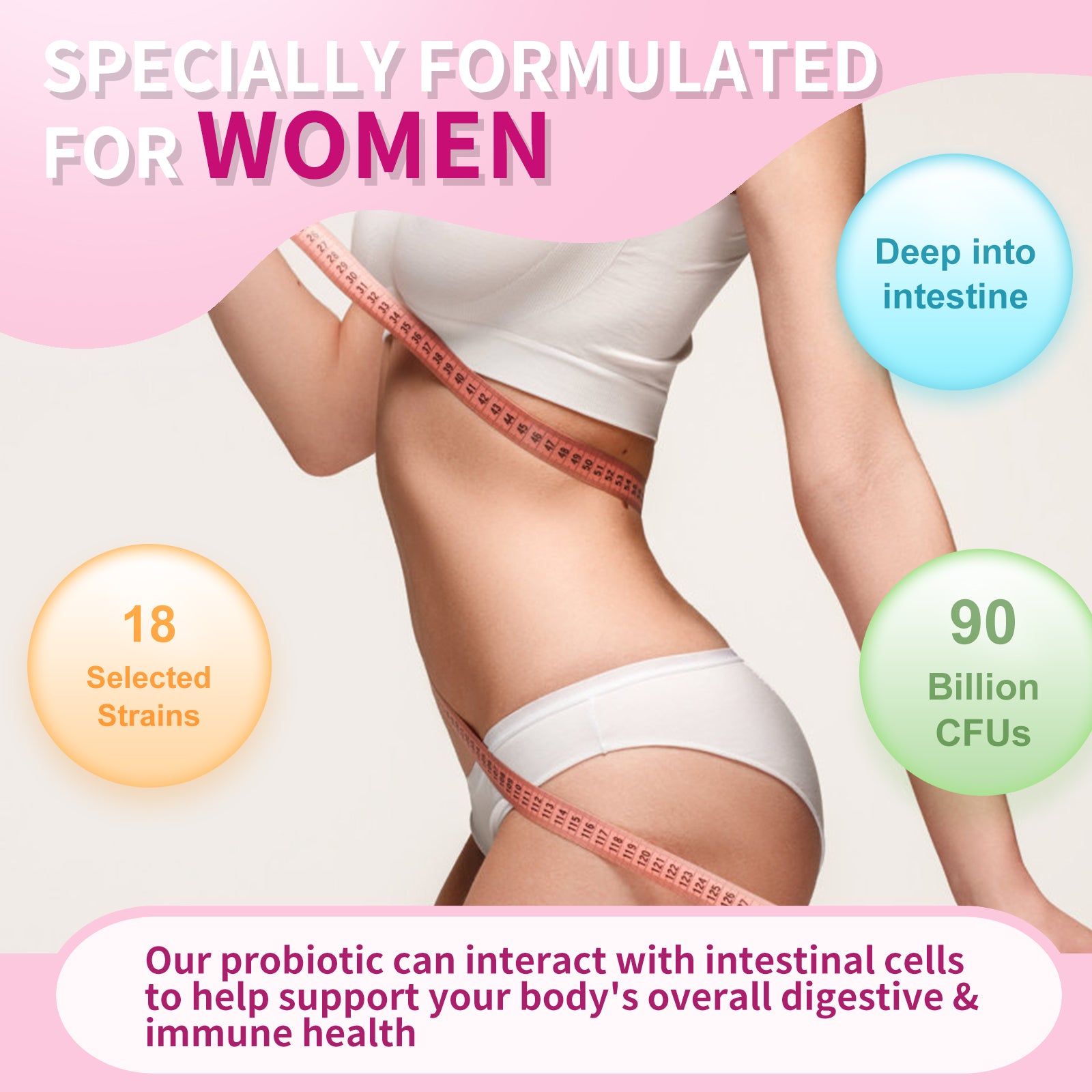 - Powerful Women's Probiotic: Daily Women's Probiotic contains 90 billion CFU plus clinically proven 18 probiotic strains and 3 prebiotics to help promote digestion, immune support and women's health. Each capsule also contains organic cranberry extract to help maintain vaginal health and relieve urinary tract infections
