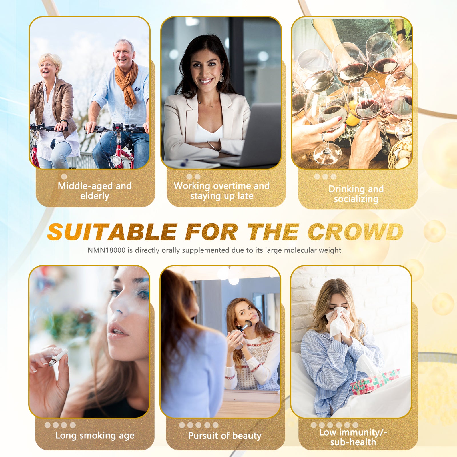 - 【NMN Nicotinamide Mononucleotide】: KFG NMN18000 unlike other supplements on the market, our KFG contain the 99% pure authentic & stabilized pharmaceutical grade I NMN(beta-nicotinamide mononucleotide) in each capsule,A higher purity NMN means higher absorption and bioavailability